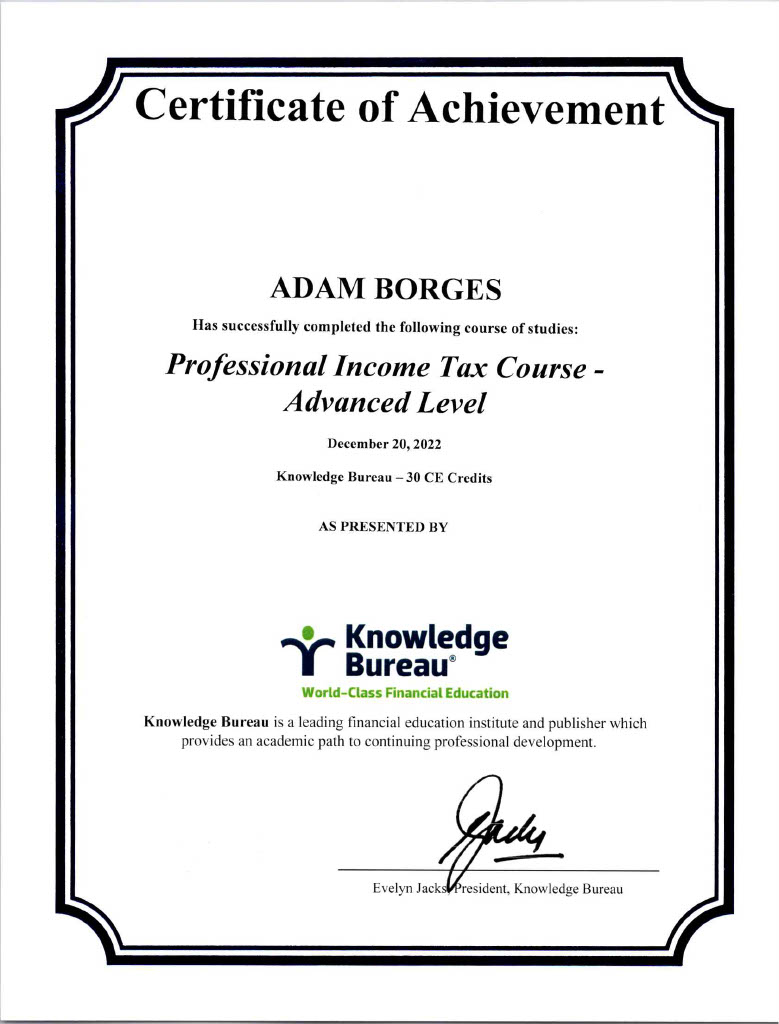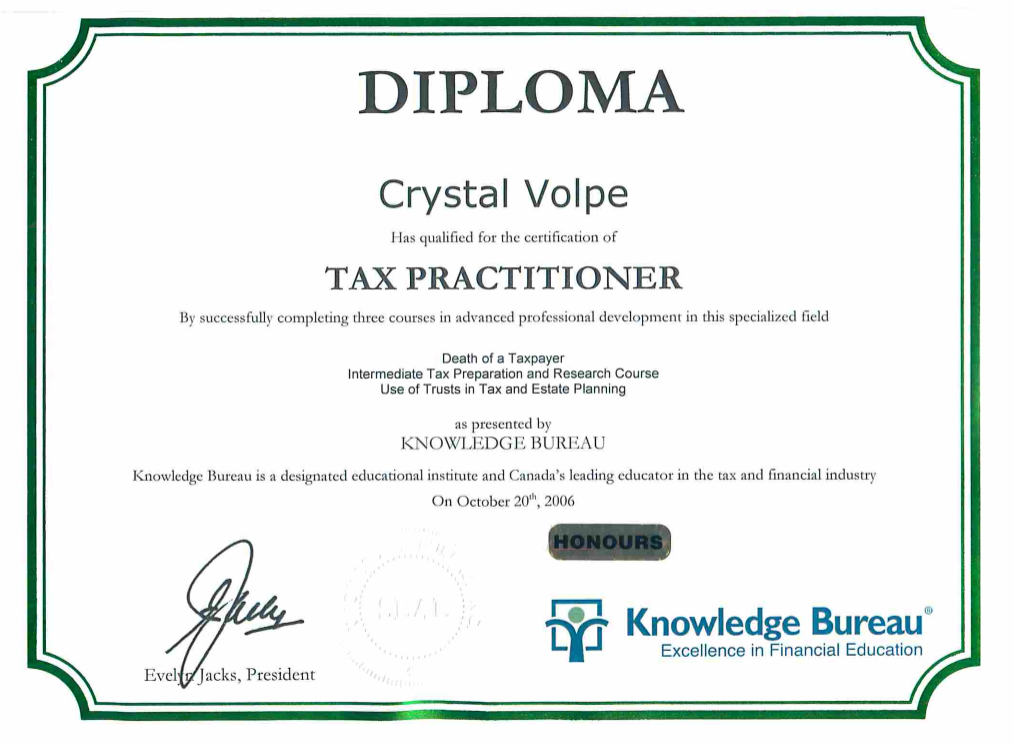 A number of our employees have been able to earn diplomas in Tax Preparation as well as Tax Financial Planning.